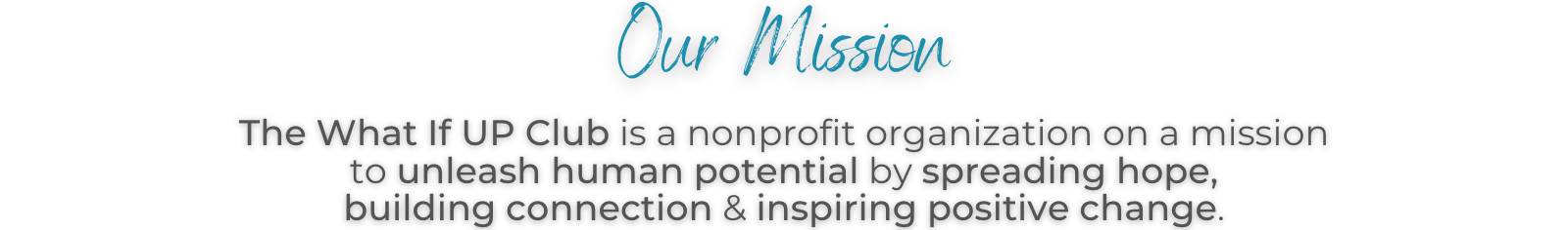 The What路If路UP Club庐 is a non-profit organization on a mission to elevate humanity by聽spreading hope, building connection & inspiring positive change.