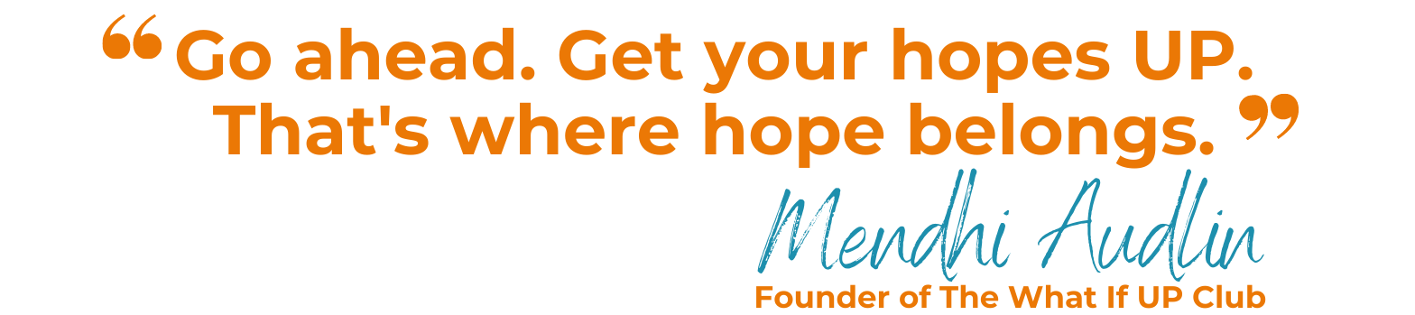 Inspired by the book "What If It All Goes RIGHT?" by Mindy Audlin, The What路If路UP Club庐 offers a place where positive, forward-thinking people can connect in a vibrant, uplifting community to transform possibilities into action, creating a ripple effect of optimism and progress.